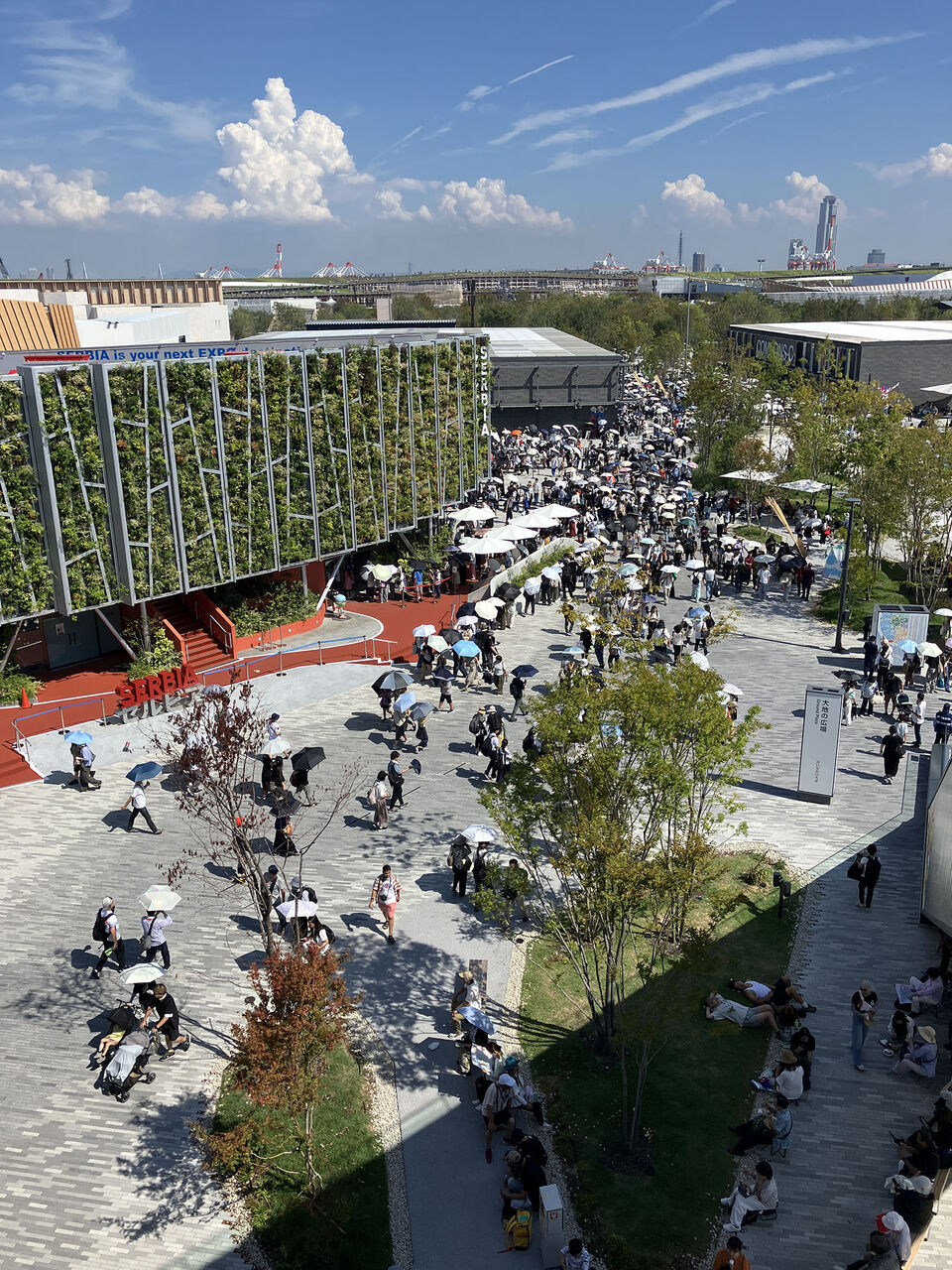 翌日は6時半に起きて、8時のバスで西ゲート。入場までが一番暑くて、大変だった。1時間ほど並んで9時半に入場。パビリオンは、予約は持っていなかったけど、シンガポールとポルトガルに入れたのでじっくり見た。シンガポールは「マーライオンがあるかな?」と話してたけど、かなり先進的でおしゃれな展示でした。